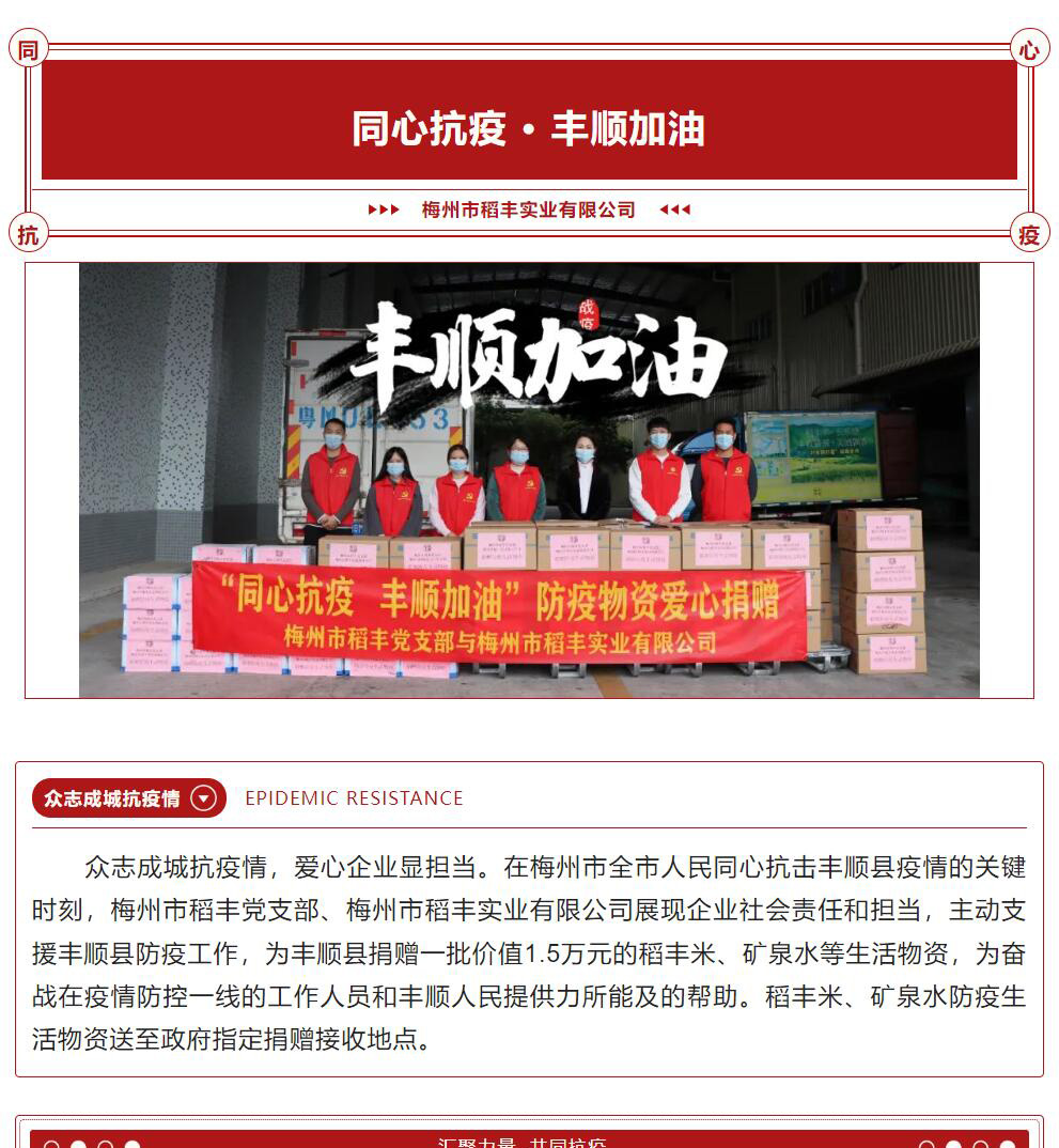 同心抗疫 豐順加油—梅州市稻豐黨支部、梅州市稻豐實(shí)業(yè)有限公司向豐順縣捐贈(zèng)稻豐米等物資助力豐順抗擊疫情